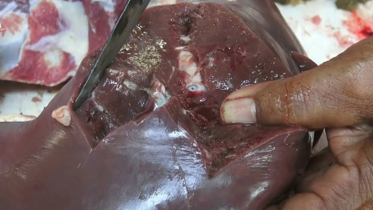 Jika hewan ternak terjangkit penyakit ini, maka dapat dibedakan secara visual. Jika organ hati dipotong, maka daging hati berlubang, warnanya pucat dan terdapat cacingi yang bersembunyi di rongga dan saluran hati. Cacing ini berbentuk pipih dengan warna yang cendrung putih. Anda dapat membuktikannya dengan cara menarik cacing tersebut dan meletakkannya di tangan.