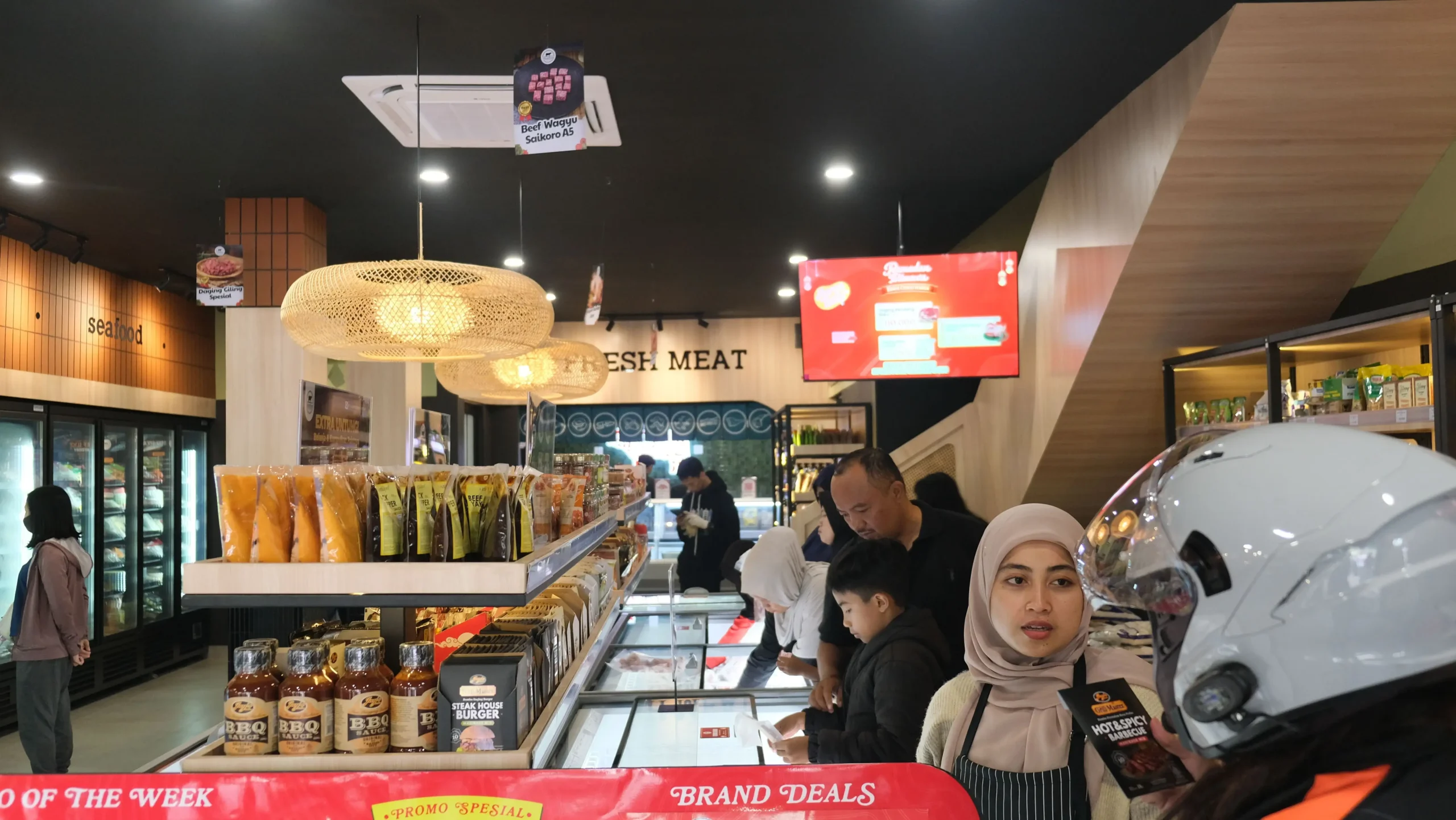 Hijrahfood Meatshop Cinere hadir dengan konsep toko modern, nyaman, dan lengkap.