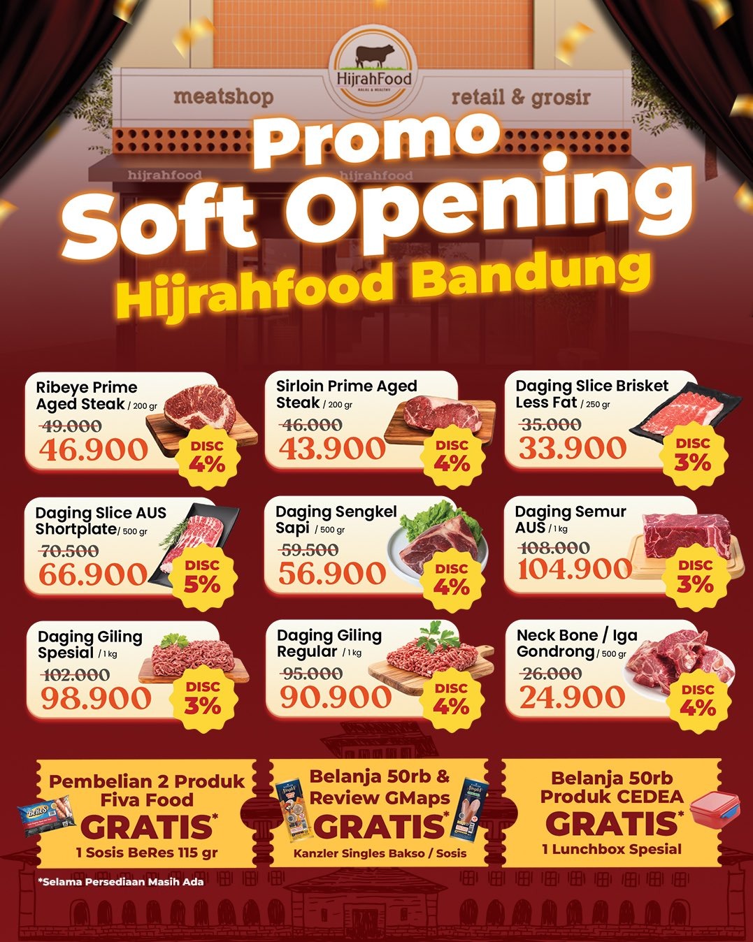 Dalam momen soft opening ini, Hijrahfood menghadirkan berbagai promo menarik serta kemudahan belanja yang sayang untuk dilewatkan.